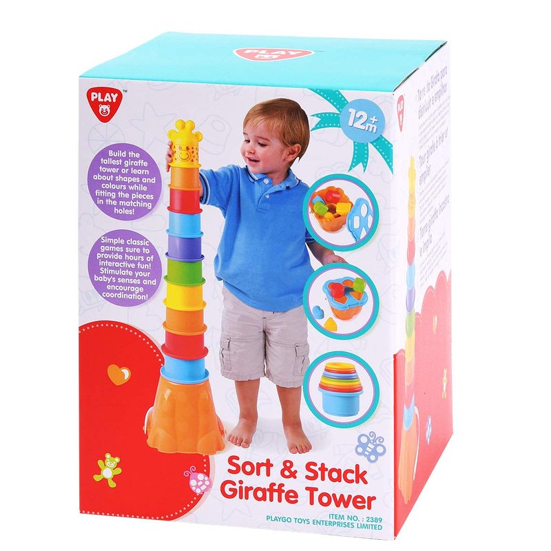 PLAY Giraffe Activity Center Stacking Cups Baby Toys Educational Toddler Toys Top Blocks Game Kit BPA Free Toys for 1 2 3 4-5 Year Old Girls Boys