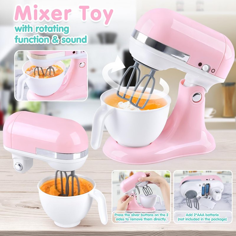 - [Warm Tips] Our package does not include batteries; The coffee maker machine and the mixer toy need to install 2 x 7 AAA batteries in order to simulate sound and light effects.