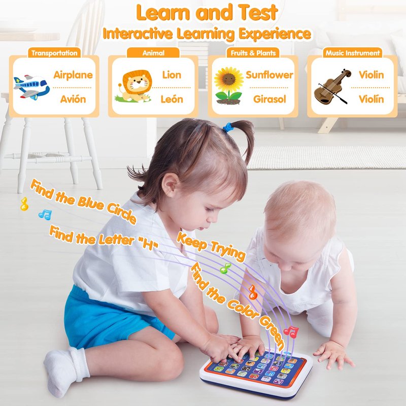 PLAY Spanish & English Learning Tablet for Toddlers 1-3, Kids Bilingual Interactive Alphabet ABC Letters, Words, Color Learning Toys Tablets, Educational Toy for 2+ Year Old Kids Babies 18 Month+