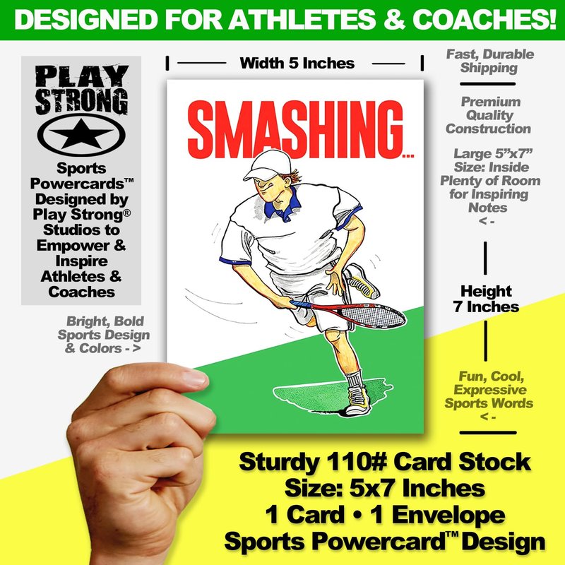 Play Strong Tennis Birthday Card 1-Pack (5x7) Power Player Illustrated Sports Birthday Cards Greeting Cards- Awesome for Tennis Players, Coaches and Fans Birthdays, Gifts and Parties!