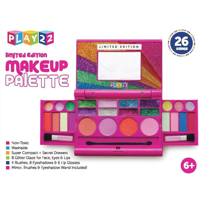 Pretend Limited Edition Makeup Palette Includes 4 Blushes - 8 Eyeshadows - 6 Lip Glosses - 8 Glitter Glaze For Face, Eyes And Lips - Mirror – 2 Brushes – 1 Eyeshadow Wand - - Best Gift for Birthday and Holidays For Boys & Girls - Original By Play22USA