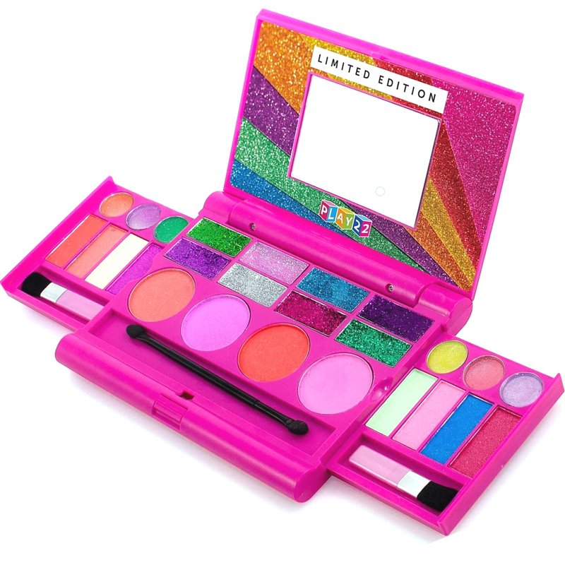 - Toy Makeup Set Meets All Safety Requirements - Cosmetic Set for Kids Non Toxic And Washable - Princess Girl's All-in-One Deluxe Makeup Palette Size 7 X 5.25 X .75 inches - Best Gift for Birthday and Holidays For Boys & Girls