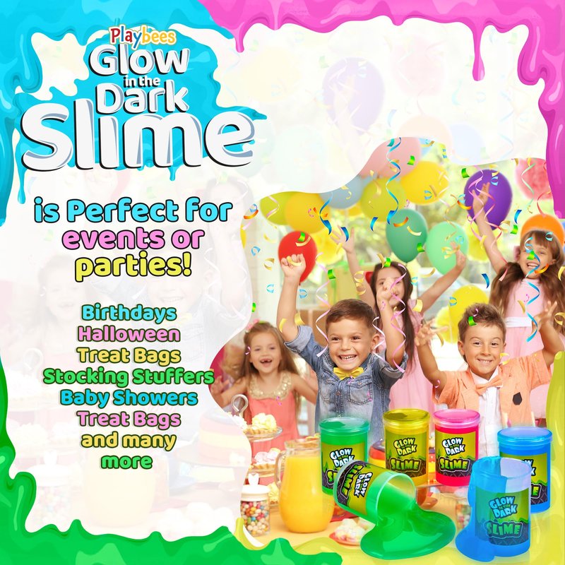 Playbees Glow in The Dark Slime - 6 Pack - Neon Blue, Green, Pink, Yellow Colors - Glowing Slime Kit for Kids - Party Favors, Goody Bag Fillers