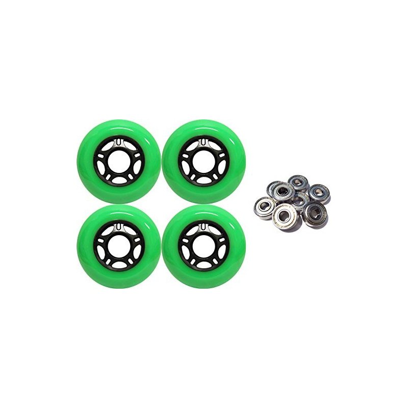 Player's Choice Outdoor Inline Skate Wheels 89a 4-Pack - Choose Size, Color, and Bearings (Green, 76mm 4-pk, ABEC 9 Bearings)