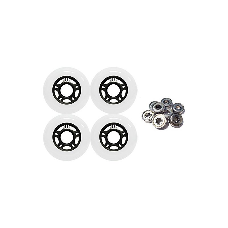 Player's Choice Outdoor Inline Skate Wheels 89a 4-Pack - Choose Size, Color, and Bearings (White, 76mm 4-pk, ABEC 5 Bearings)