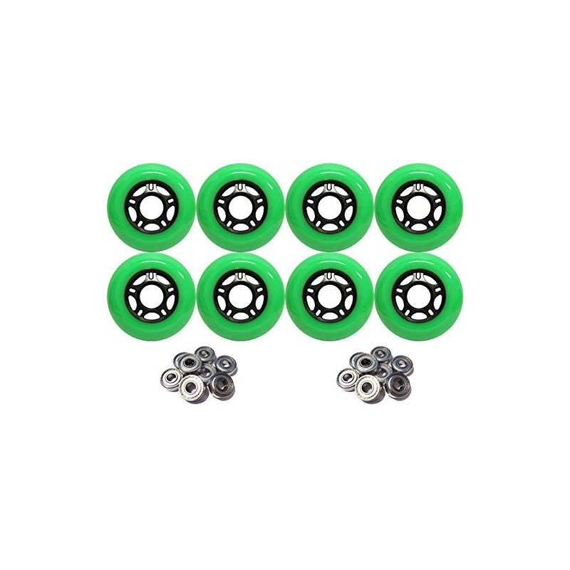 Player's Choice Outdoor Inline Skate Wheels 89a - Choose Size, Color, and Bearings (Green, 76mm 8-Pk, ABEC 9 Bearings)
