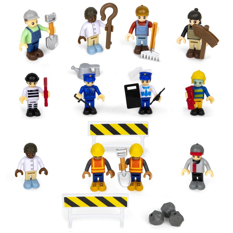 Playkidiz 12 Toy Action Figures & Accessories, 2 Inch Play People Construction and Community Worker Figurines - Pretend Play Toys for Kids 3+ (28Pcs)