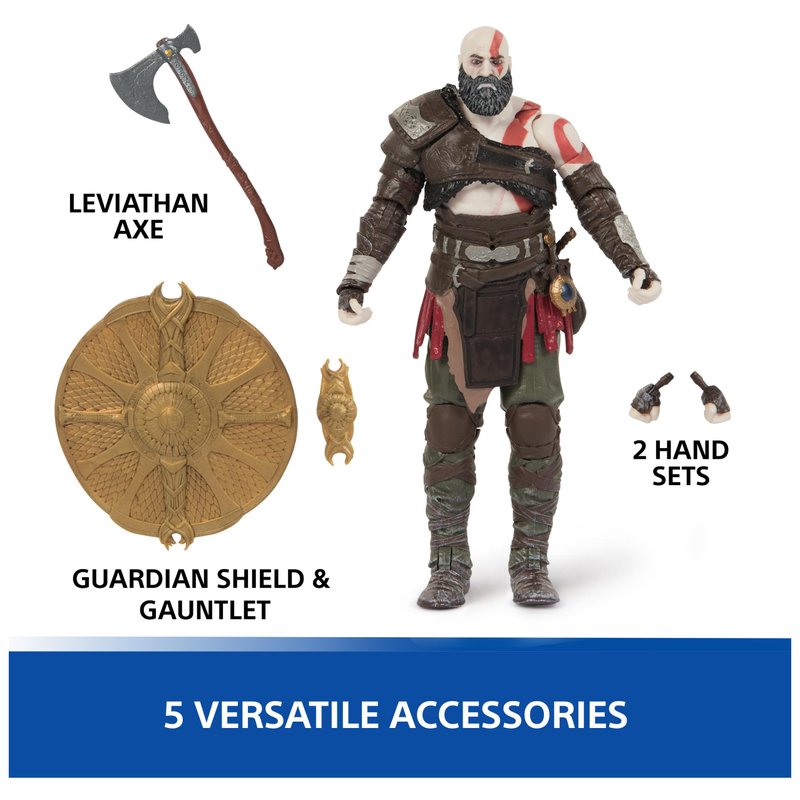 - 5 ACCESSORIES FOR BATTLE: Kratos comes prepared with 5 essential accessories, including his Leviathan Axe, Guardian Shield, Gauntlet and 2 extra handsets, ready for any challenge