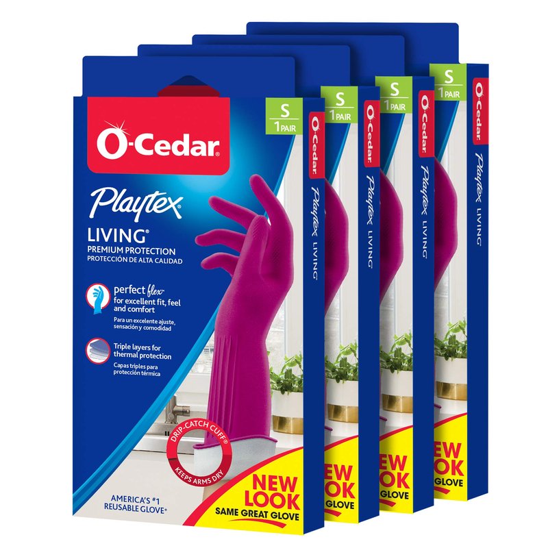Playtex Living Reuseable Rubber Cleaning Gloves (Small, 4 Pairs), Premium Protection Reusable Household Gloves