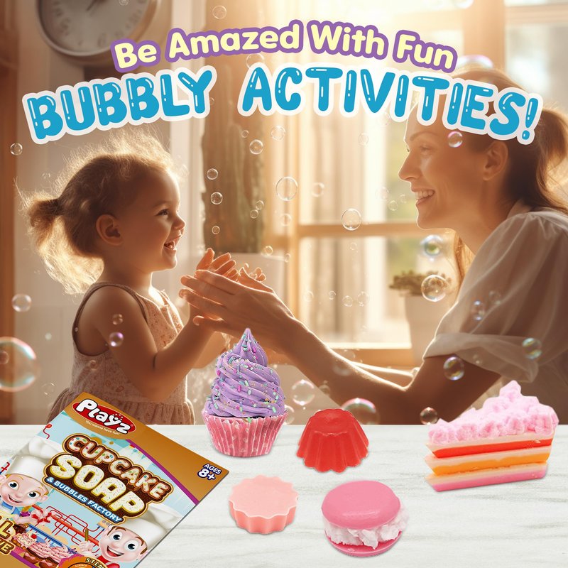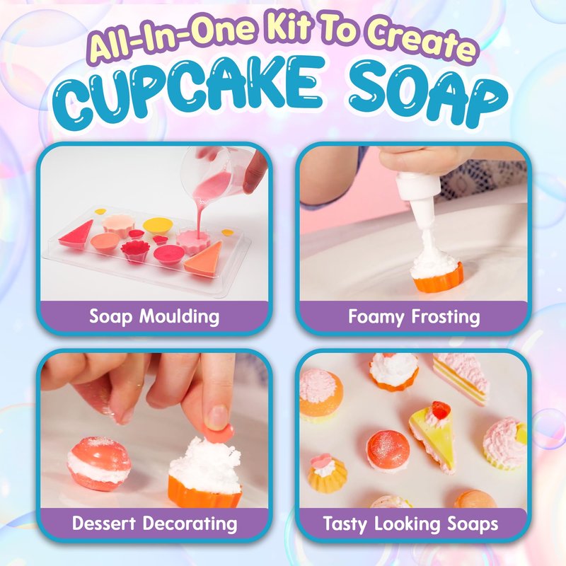 Playz Yummy Cupcake Soap & Bubbles DIY Science Kit - Fun STEM Gift for Age 8, 9, 10, 11, 12 Year Old Girls and Boys - Educational Arts and Crafts for Kids Age 8-12