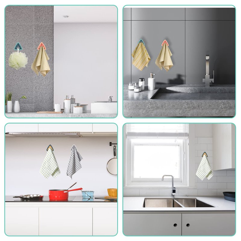 - ✿【Safe & Tidy】Kitchen towel hook is designed triangular, small and delicate. Features round and no sharp corners, safe to use for all ages of people. Hang the towel for easy drying, save space, and make the kitchen or bathroom clean and tidy.