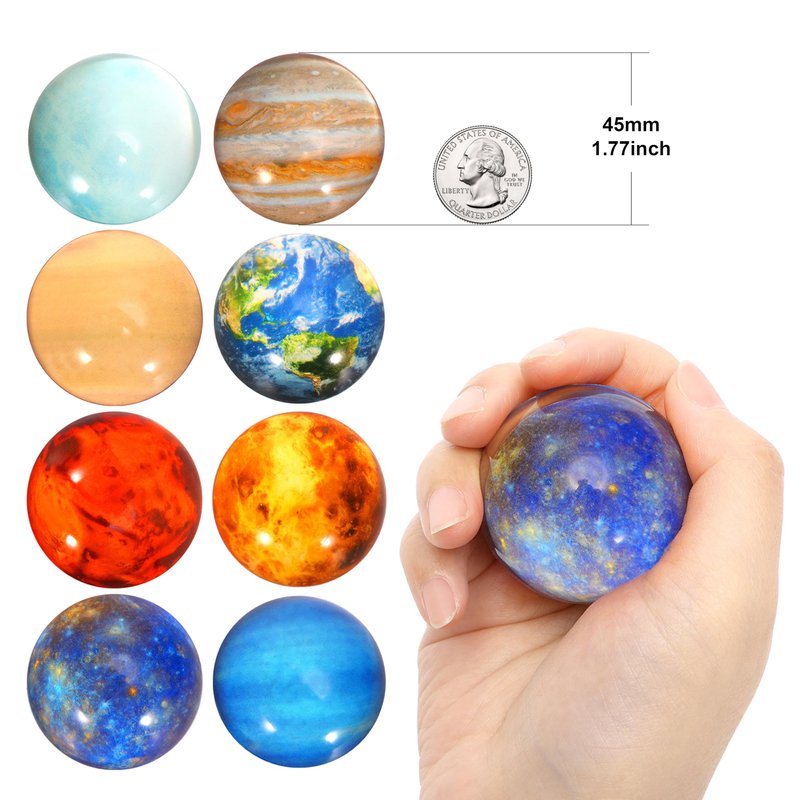 - Planet Toys Kit: Comes 8 pieces 45mm planet themed bouncy balls in bulk, and 8 pieces eight planets flashcards for kids educational toys, total 16 pcs in package