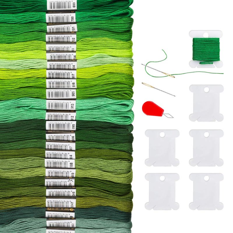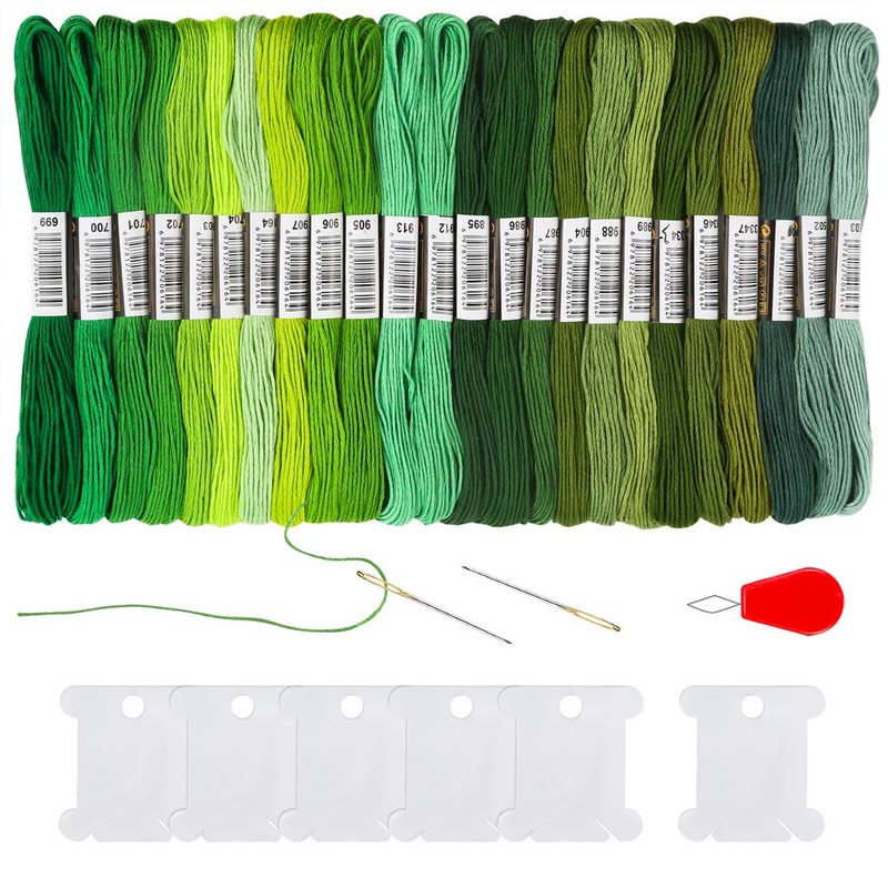 - Package Included◢ 24 skeins Green Gradient friendship bracelet string, 6 pieces plastic floss bobbins, 2 embroidery needles and 1 needle threader