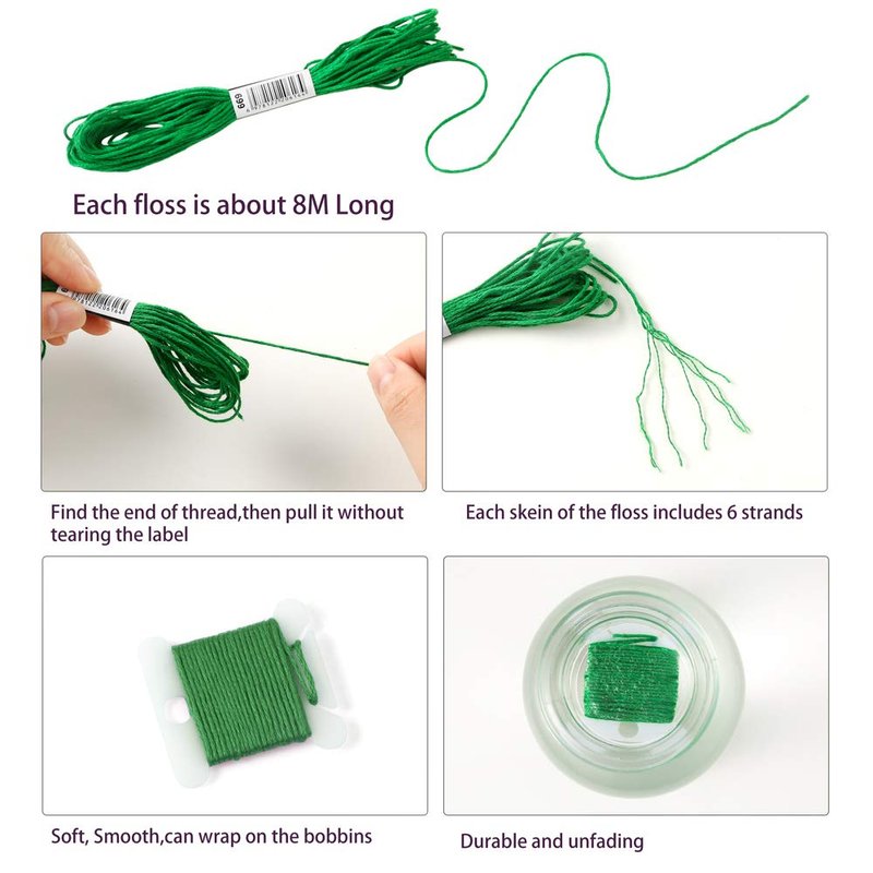 - About the Floss◢Each floss is about 8.75 yard long and can be divided into 6 strands, and made of Polyester Cotton,Smooth, Shiny and easy to store