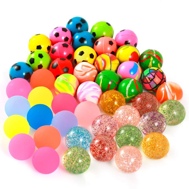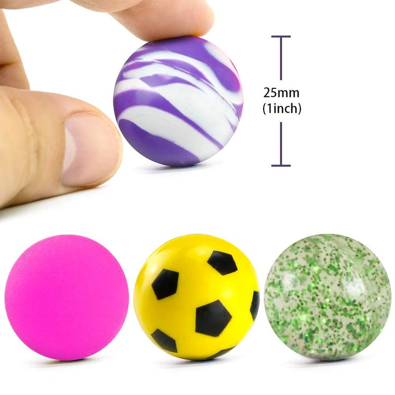- 4 style balls: 12 mixed colour bouncy balls, 12 neon bouncy balls, 12 football bouncy balls, 12 gold powder bouncy balls; Notice: Manual count, please allow a small amount of error