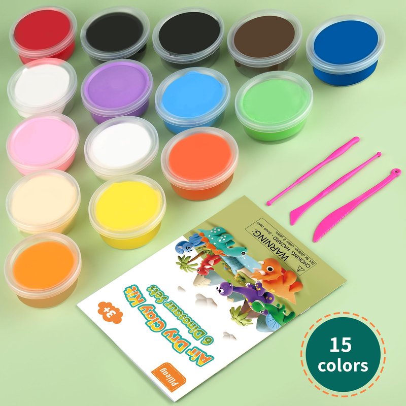 Modelling Clay Kit - Air Dry Magic Clay, DIY Molding Clay with Tools, Craft Kit for Kids Boys Girls, Presents Gift for Boys & Girls Age 3-12 Year Old Air Dry Clay Kit - Magic Clay, Molding Clay for Kids, Safe & Non-Toxic, Colorful DIY Clay, Great Gift for Boys & Girls Air Dry Clay - Modeling Clay Best Gift for Kids, Ultra Light Magic Modeling Clay with Modeling Tools and Project, No-Sticky and Non-Toxic Air Dry Clay, Ultra Light Modeling Clay, Magic Clay DIY Creative Modeling Dough with Project Booklet Air Dry Clay,Modelling Clay with 3 Tools & Project Booklet,DIY Creative Ultra Soft Light Magic Clay,Arts and Crafts Kits for Kids Boys Girls Toys Rainbow assortment kids clay for unlimited creativity appeals to both boys and girls of 3 years old and up,Colours may be easily mixed, which immerses the child up in the world of creation and fun air dry clay kids gifts can help kids enhance their logical thinking ability, confidence and sensory development. Keeping kids obsessing with modeling clay and staying away from electronics. 15 colors of clay is a good choice for kids toys, christmas gifts for kids, arts and crafts for kids. Simple and easy steps for kids. that benefit for color recognition, mixing and matching, as well as learning how to paint. Tutorials allow kids to start from imitation, until they can create their own work independently. Popular air dry clay as gifts for girls, crafts for girls, boys toys.