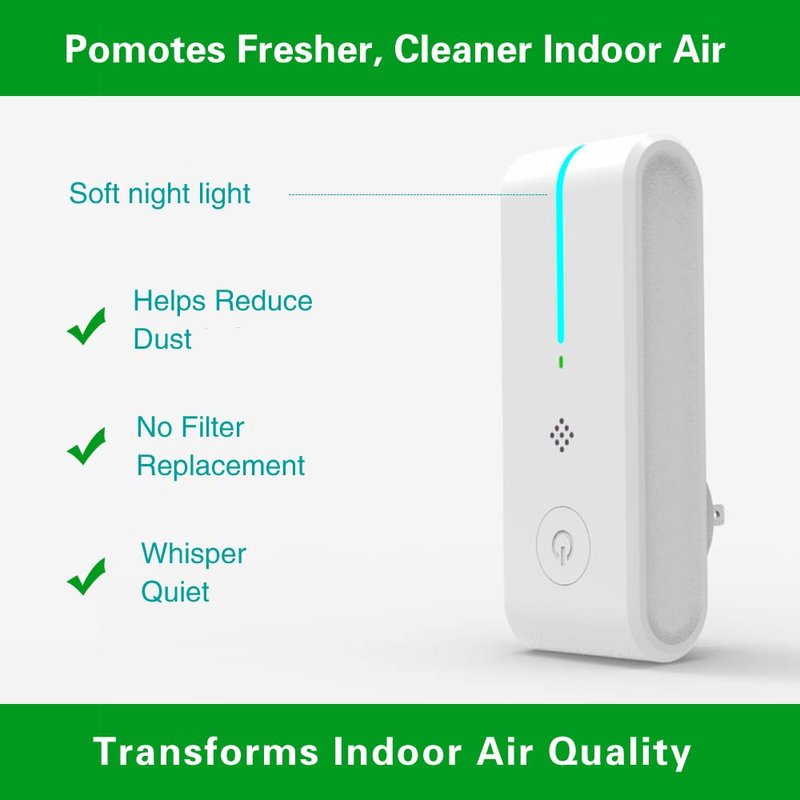 Plug-in Air Purifier, Ionizer Air Purifier Portable Air Purifier for Home, Bedrooms, Toilets, Living Room, Bathrooms, Closets, Pet Room, Power Saving White