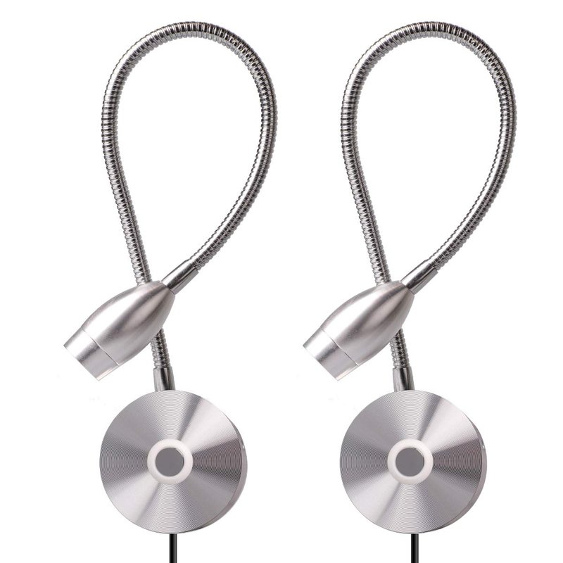 Plug in Wall Light, LED Dimmable Reading Lamps for Bed Headboard Goose Neck Plug Wired Sconce Lamp (2 Pack, 3000K Warm White)