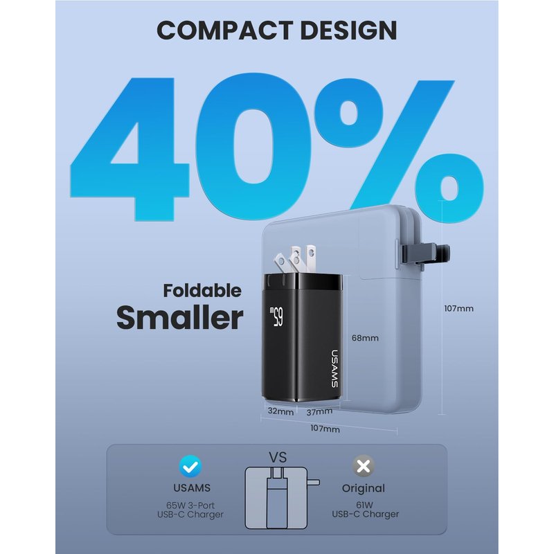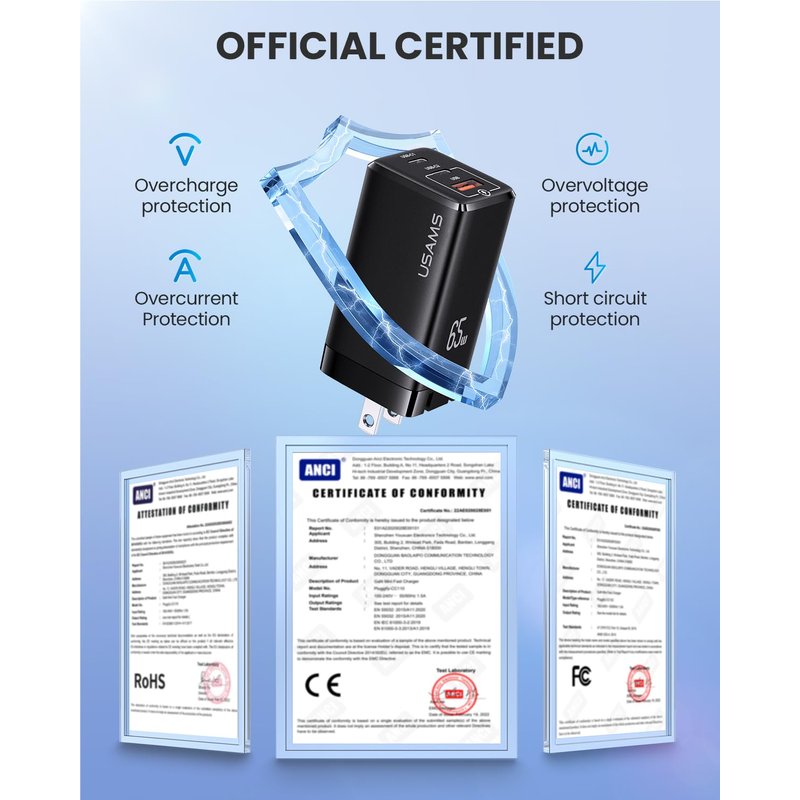 - 【3-in-1 Dual USB C Charger】: The fast charger Comes with 2 USB C(PD3.0, 65W Max) and USB A (QC4.0, 30W Max) . 3-port output can simultaneously charge multiple devices at the same time. So you only need to bring the charger instead of 2-3-4. Portability Handy for travel、home office and on-the-go charging. when you connect three devices, power will be distributed efficiently between ports to ensure you get a better charge.