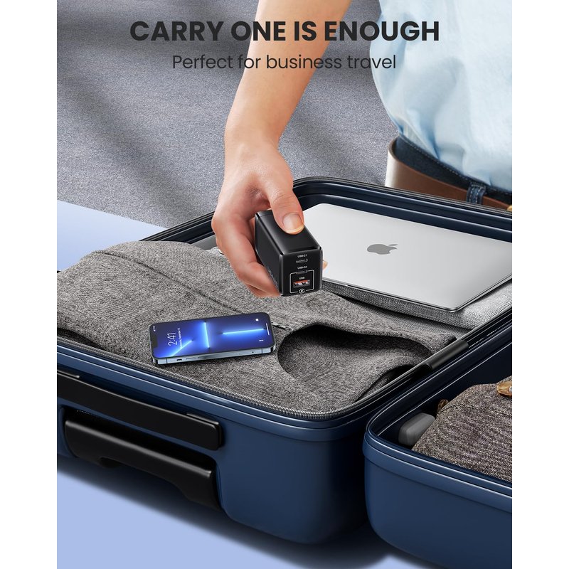 Pluggify USB C Charger 65W, 3 Ports GaN III Super Fast Charger Block, Compact Foldable Wall Charger PD3.0/QC4.0 Phone Charger for iPhone 11-15 Series, MacBook, iPad, Dell XPS 15, Galaxy S23-21