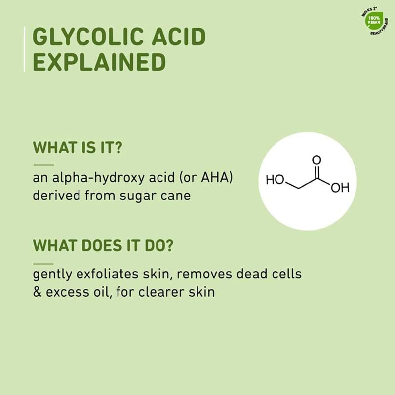 - REMOVES DIRT, DEAD SKIN CELLS & EXCESS OIL: A powerful AHA aka Glycolic Acid helps prevents pimples and brightens up skin by gently exfoliating dead skin cells & clogged pores, leaving it feeling refreshed and energized.