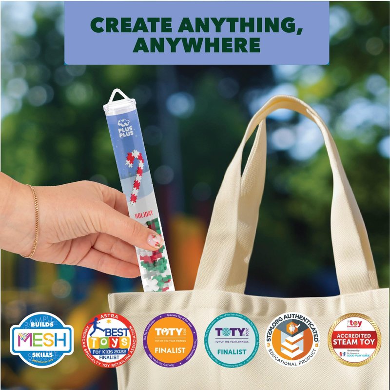 - Create Your Own Holiday Mix: Get festive by building a 3D Wreath and Candy Cane! This toy set includes all the colorful Plus-Plus pieces you need to create a winter symbol. Great for Christmas!
