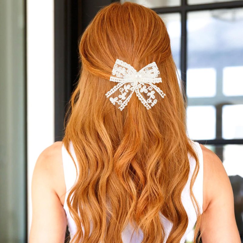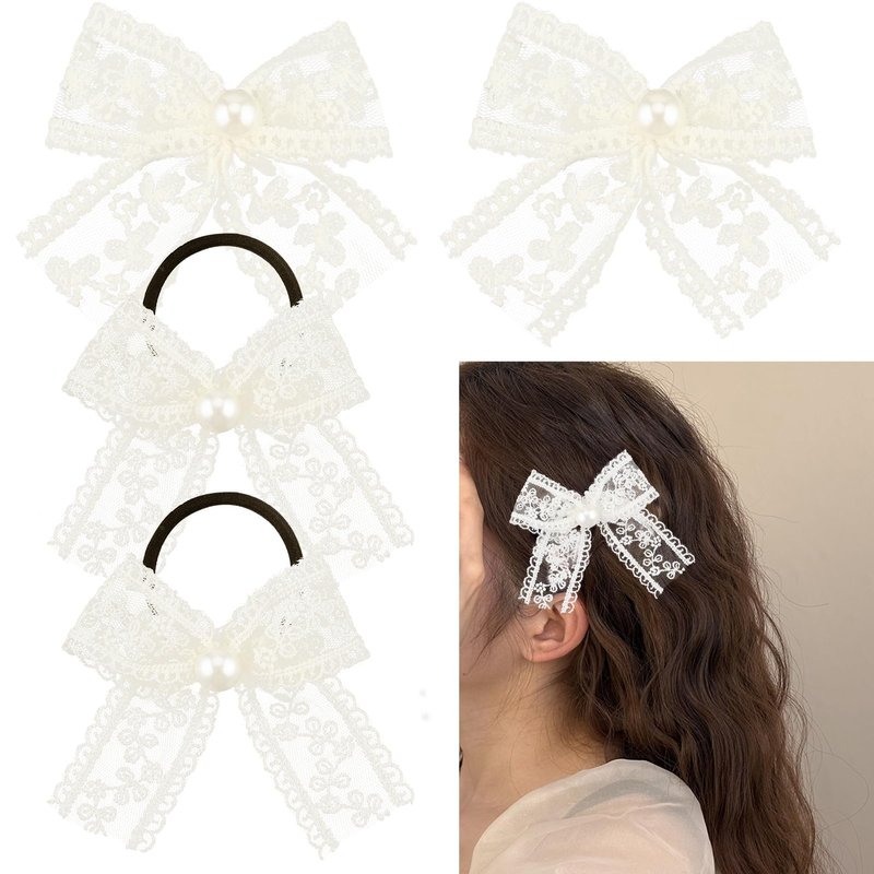 - 【Widely Applicable】This lace bow hair clip and loop is suitable for different occasions, such as traveling, taking photos, attending ceremonies, birthdays or other holidays, exercising, yoga, office, parties, family life, and makeup. Especially suitable for weddings and engagements, when you wear this cute hair clip, you will receive a lot of praise in the crowd.Hair clips for toddler girls women,bow scrunchies.