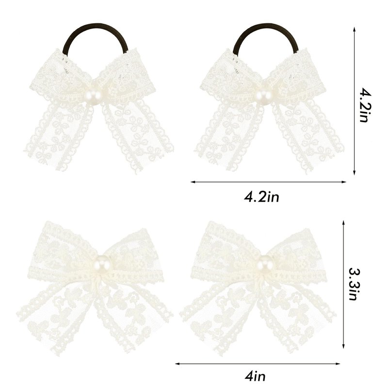 - 【The Lace Hair Barrettes and Scrunchies Size】The length of the lace bow is 8.5cm(3.34in), and the width of the lace bow is 9.5cm(3.74in). The hair clip is a duckbill clip, which is easy to wear and remove. The lace bow hair loop is elastic,making it suitable for both thick and thin hair,cute scrunchies for women.