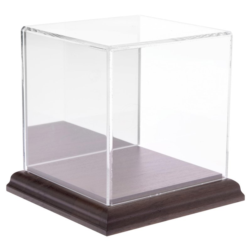 Plymor Clear Acrylic Display Case with Hardwood Base (Mirror Back), 4" x 4" x 4"