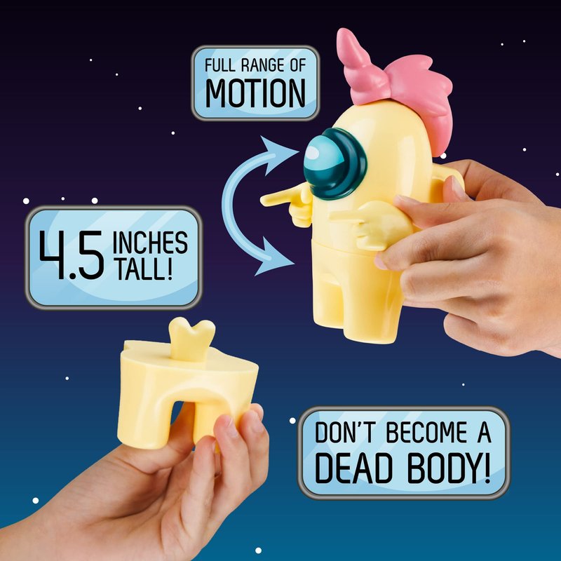 - SERIES 3 COLLECTIBLE ACTION FIGURES: A brand new series of Among Us toys and collectibles for kids. 1 pack Yellow Crewmate Action Figure with 1 set of detachable hands and 2 Different Among Us Hats.