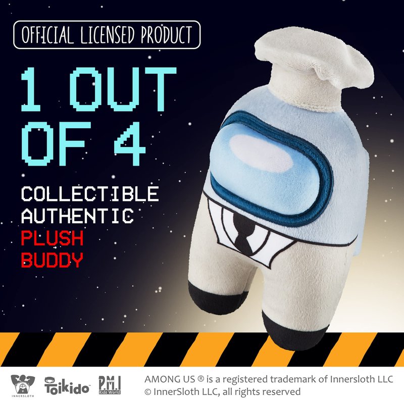 - GENUINE AMONG US STUFF LICENSED BY THE GAME’S DEVELOPERS. P.M.I., the manufacturer of these Among Us toys, is licensed by InnerSloth, the company that created AmongUs. The Among Us plush large toys are authentic-looking and in line with the game’s original style. Minimalistic as they are, these huggable buddies (check out other collections for small toys) show the producer’s great attention to detail. Spark your children’s interest in the game, or reward them if they’re already fans.