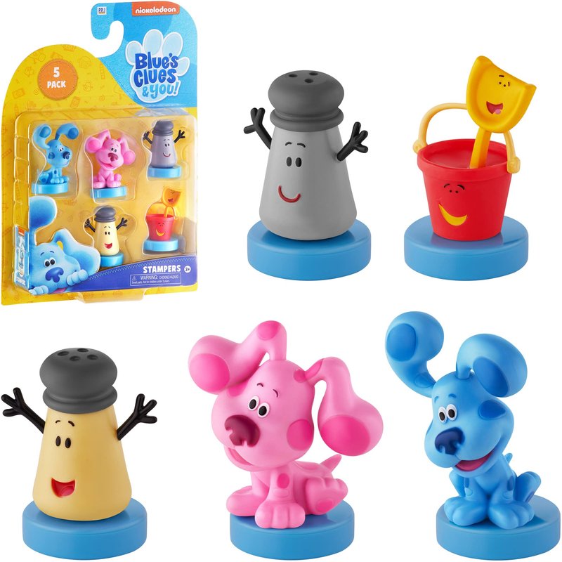- GET 5 BLUE’S CLUES KIDS’ STAMPS AT ONCE! These are Blue's Clue toys that leave marks on paper and represent the series’ characters, including (depending on the pack) Blue herself, Sidetable Drawer, Tickety Tock, Mr. Salt, and Cinnamon. You can even find Magenta!