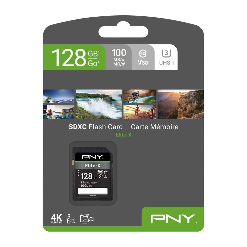 PNY 128GB Elite-X Class 10 U3 V30 SDXC Flash Memory Card - 100MB/s, Class 10, U3, V30, 4K UHD, Full HD, UHS-I, Full Size SD