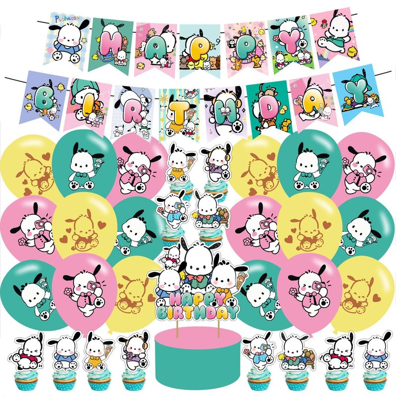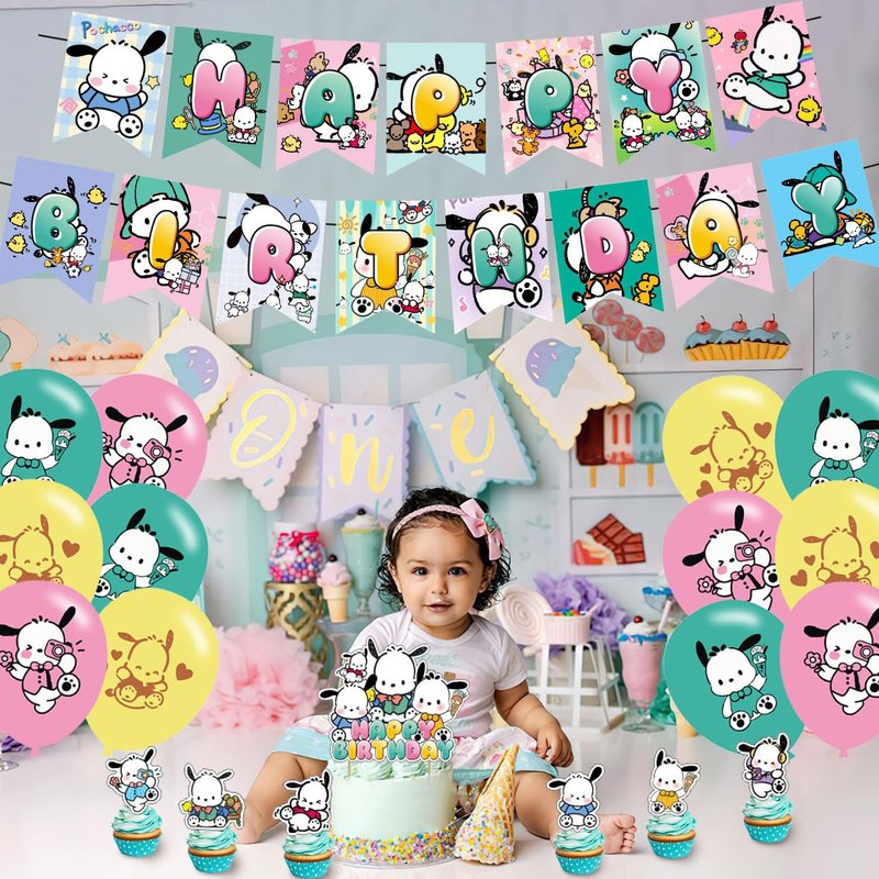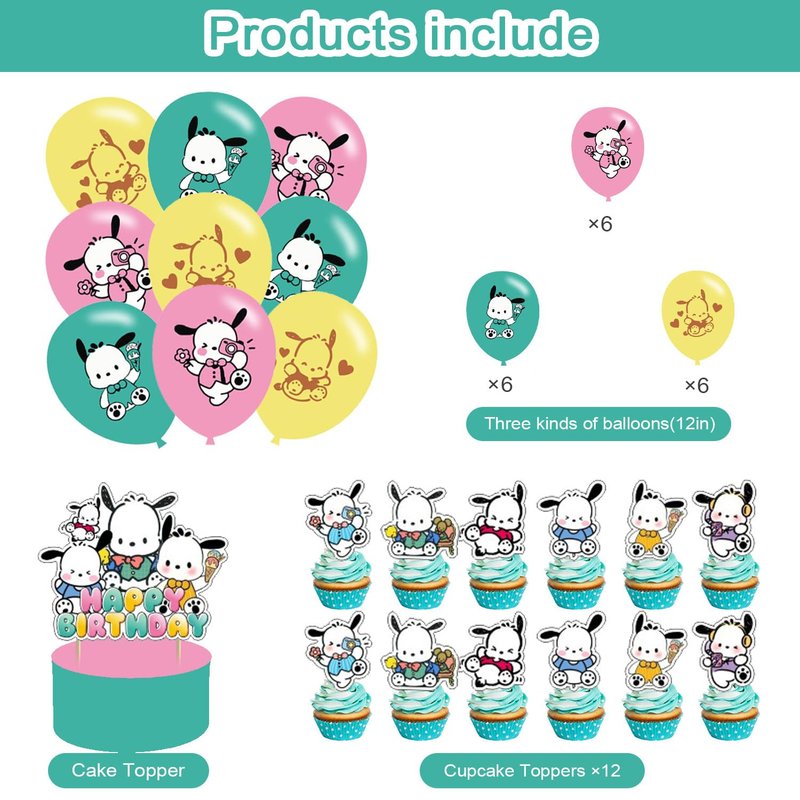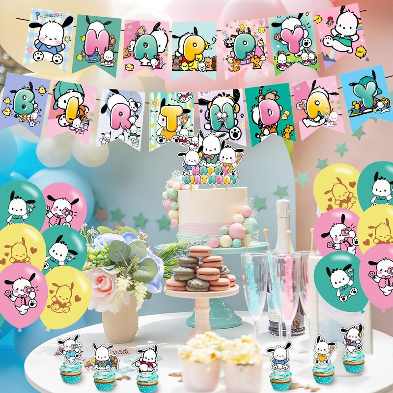 - 【WHAT'S IN THE PACKAGE】The birthday party decorations set includes : Pochacco themed happy birthday banner, cupcake toppers, cake topper, cartoon themed latex balloons decorations. Perfect for kids' birthday.