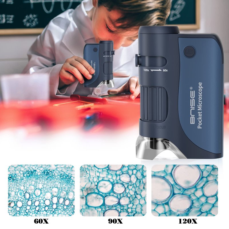 - ✅【Switchable Multiples】This pocket microscope can magnify 60X to 120X. A powerful magnification range can meet the needs of daily use. The microscope focuses easily, which can see the beauty of nature that the naked eye can't see.