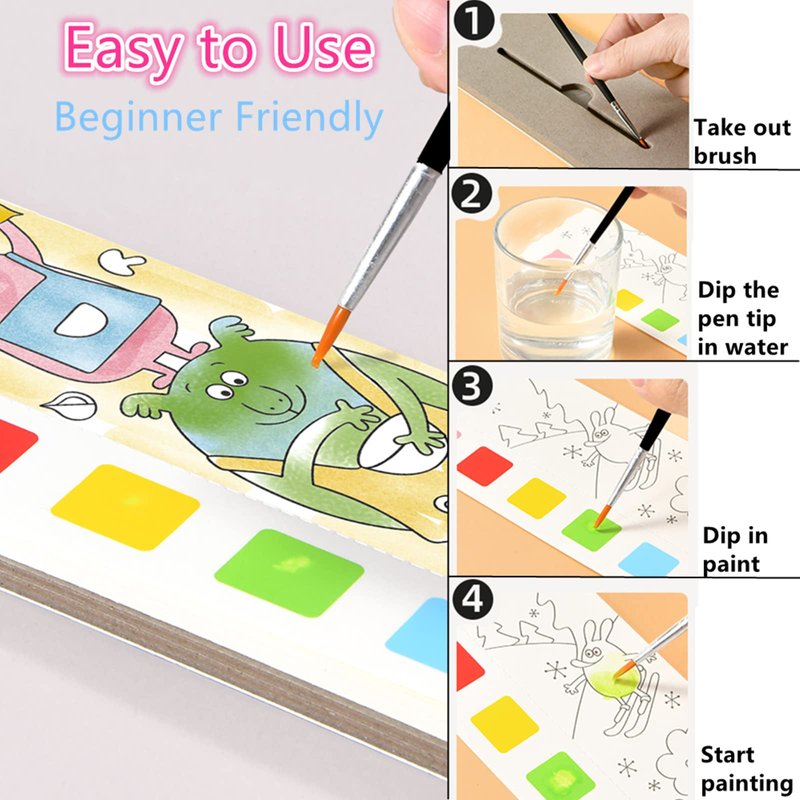 - 【Easy to Use】Our activity book for kids is an ideal mess-free introduction to painting that’s incredibly easy to use. Simply wet the paintbrush, moisten the paint palette, and fill in the pictures.