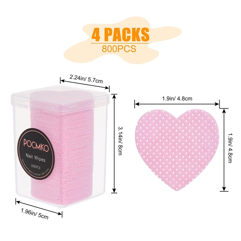 Included 4 plastic containers, each container has 200 Pcs nail polish remover wipes, total 800 Pcs lint free nail wipes,