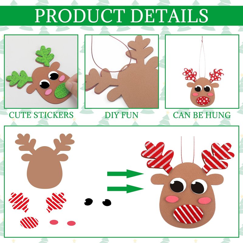 - Wide Application: these foam Christmas reindeer craft kits for kids help children practice their ability to recognize patterns, expand their imagination and creativity, and can be used in toddler class activities; They are also very cute decoration and can be used to decorate windows, Christmas trees, walls and so on