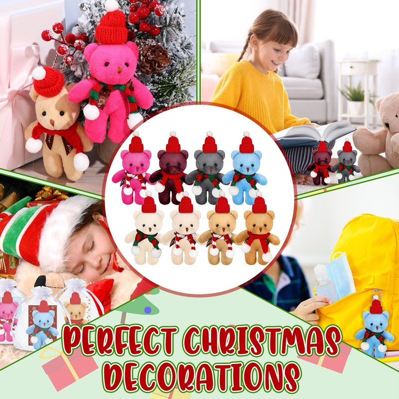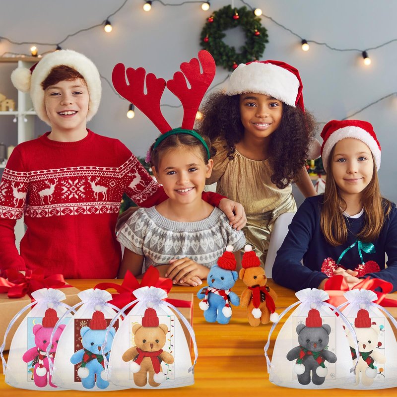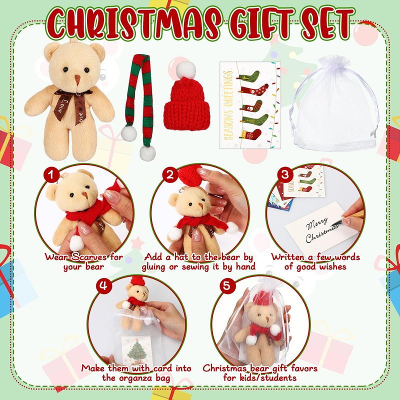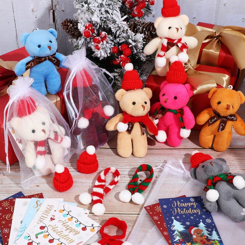 - Christmas Plush Bear Set: the package comes with 24 pieces of plush bear ornaments, 24 pieces of Santa hat, 24 pieces of scarves, 24 pieces of organza bags and 24 pieces of gift cards, a total of 24 sets; The nice combination and sufficient quantity can meet your Christmas gifting needs