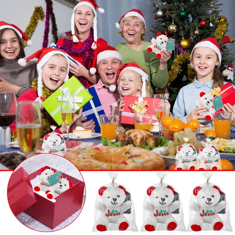 - Intimate Religious Features: White bear with red Jesus printed on the chest and a hugging Jesus design that profoundly represents the Christian faith resonating with the holiday's religious significance. Additionally, the accompaniment of the Christmas candy card reiterates the meaning of Christmas candy, enhancing the religious spiritual meaning and making it a treasured christian gift for family members, friends, or colleagues