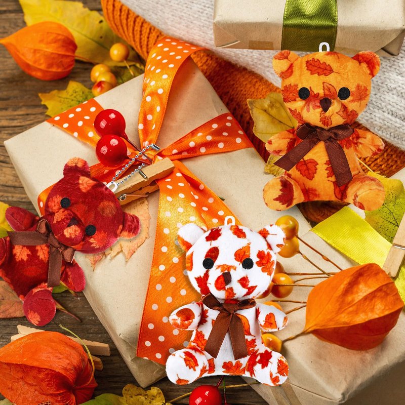 - Fall Bears Gifts: fall mini plush bears with leave cards are classroom or school exchange prizes gifts for kids, and these stuffed animals also can be applied as fall gifts for lovers, family, classmates and friends; You can also write blessings on the back of the greeting card and those who receive the gift will be very surprised and happy
