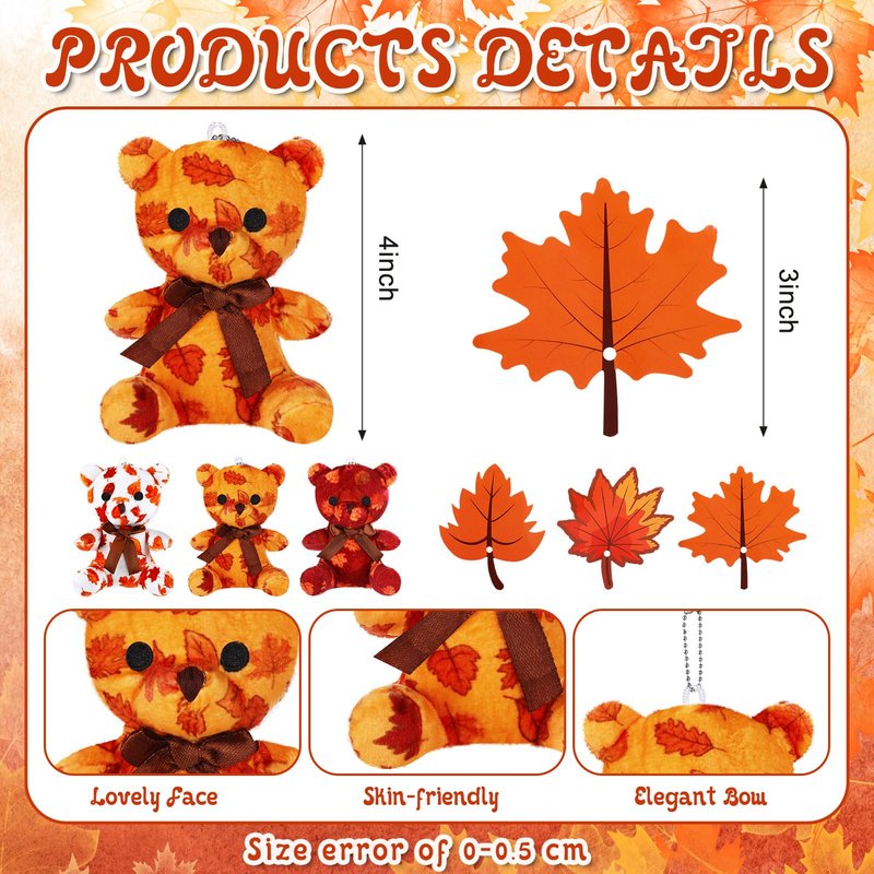- Exquisite Design and Size: mini plush bear is approx. 4 inches/ 10 cm in height, and each of the fall leaf mini plush bears has a chain on the top, convenient for you to hang on the bag, keychain and more; The leaf cards are made of paper cardboard, the surface is covered with waterproof film, the back of the greeting card can be written on; This is nice for kids as classroom school exchange prize gifts