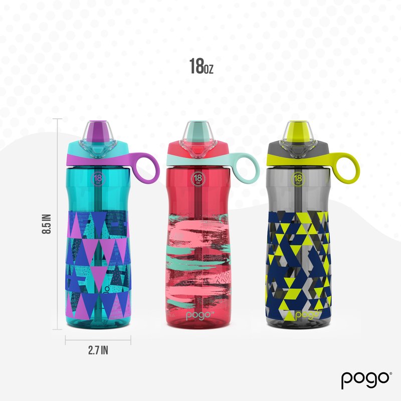 Pogo BPA-Free Tritan Kids Water Bottle with Silicone Soft Straw, Grey Geode, 18 oz.