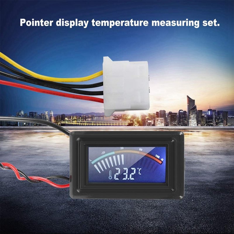 Pointer Display Thermometer with Probe, PC G1/4 Thread Water Cooling System Temperature Meter for Computer Laptop
