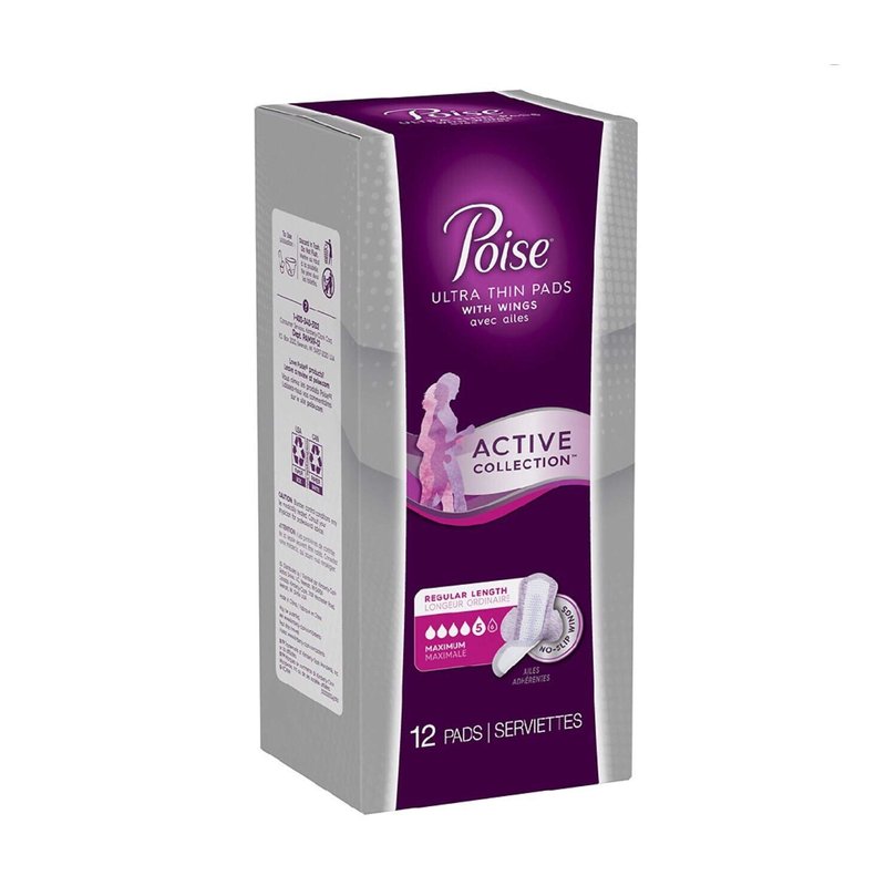Poise Ultra Thin Pads with Wings Active Collection (Maximum - 12 Pads)