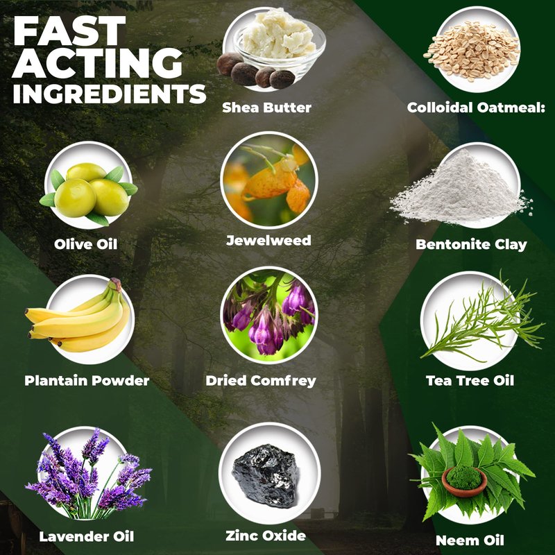 - Bentonite Clay: Detoxifies the skin and helps relieve poison ivy by removing toxins.