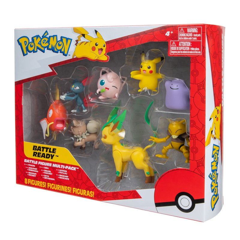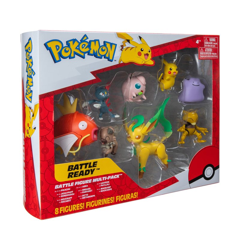 Pokémon Pokemon Battle Figure Multipack (8PK: Female Pikachu, Jigglypuff #1, Rockruff, Sneasel, Abra, Ditto, Leafeon, Magikarp) W8, Black