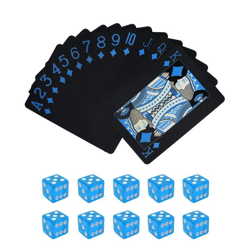 The playing cards and dice set is a great gift for your siblings, friends who loves playing cards or stacking game. Suitable for classic magic tricks, KTV, camping and family party etc. They are waterproof and can be washable, so you can take them to play in a swimming pool or on the beach. The playing cards are made of high quality thick PVC material. A deck of cards has 54 cards, 52 playing cards and 2 jokers. A perfect tool for classic magic tricks. The dice are made of transparent acrylic, finished polished and the whit pips are highly visible. Grade AAA, in 19mm, meet or exceed all exacting casino dice specifications for precision.