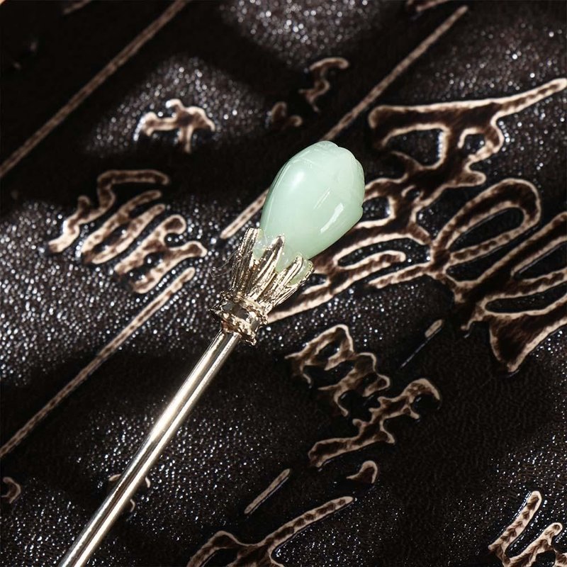 Pokinge 2pcs Chinese Style Hanfu Ornament Hair Stick,Elegant Imitation Jade Hair Fork for Women,Alloy Hair Clasp Style Tool,Retro Cheongsam Coiffure Headdress