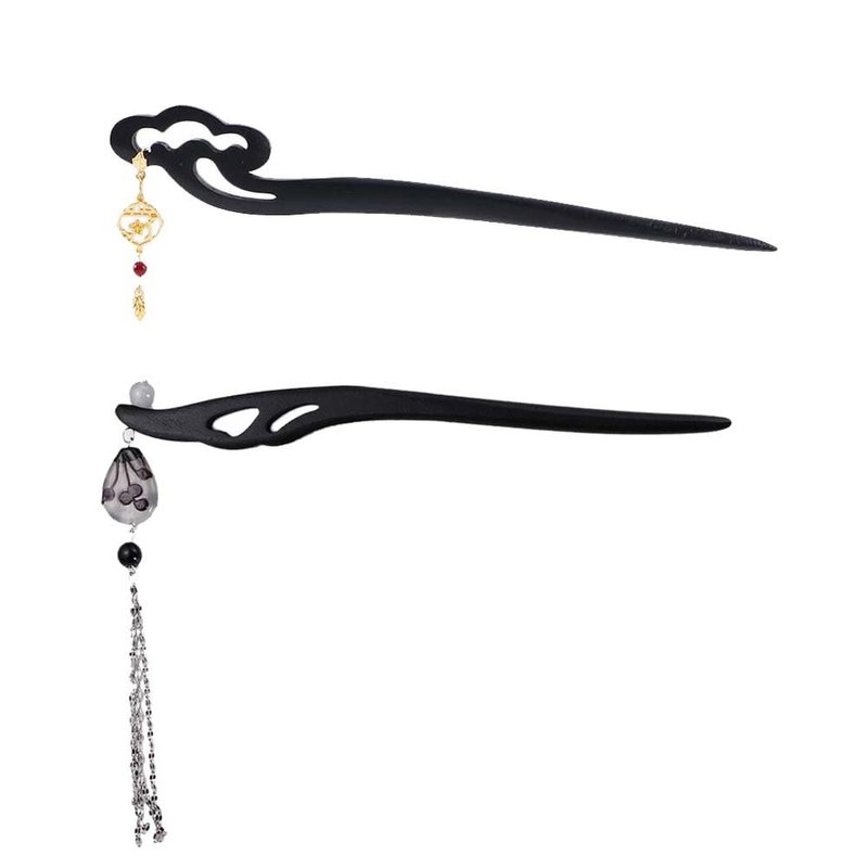 Pokinge 2pcs Vintage Temperament Tassel Hairpin Auspicious Cloud Wood Hair Sticks, New Chinese Style Wooden Hairpin Exquisite Cheongsam Headdress Accessories